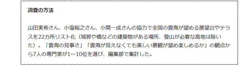 8月10日(土)の日本経済新聞・何でもランキング「雲海が織りなす刹那の美 時を忘れる神秘のスポット10景」に(一社)日本観光文化協会 小塩会長のコメントが掲載されました。